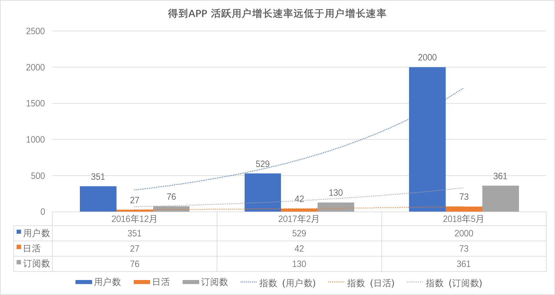 2017年11月 得到App用户数超过1200万,日均活跃用户数近90万。