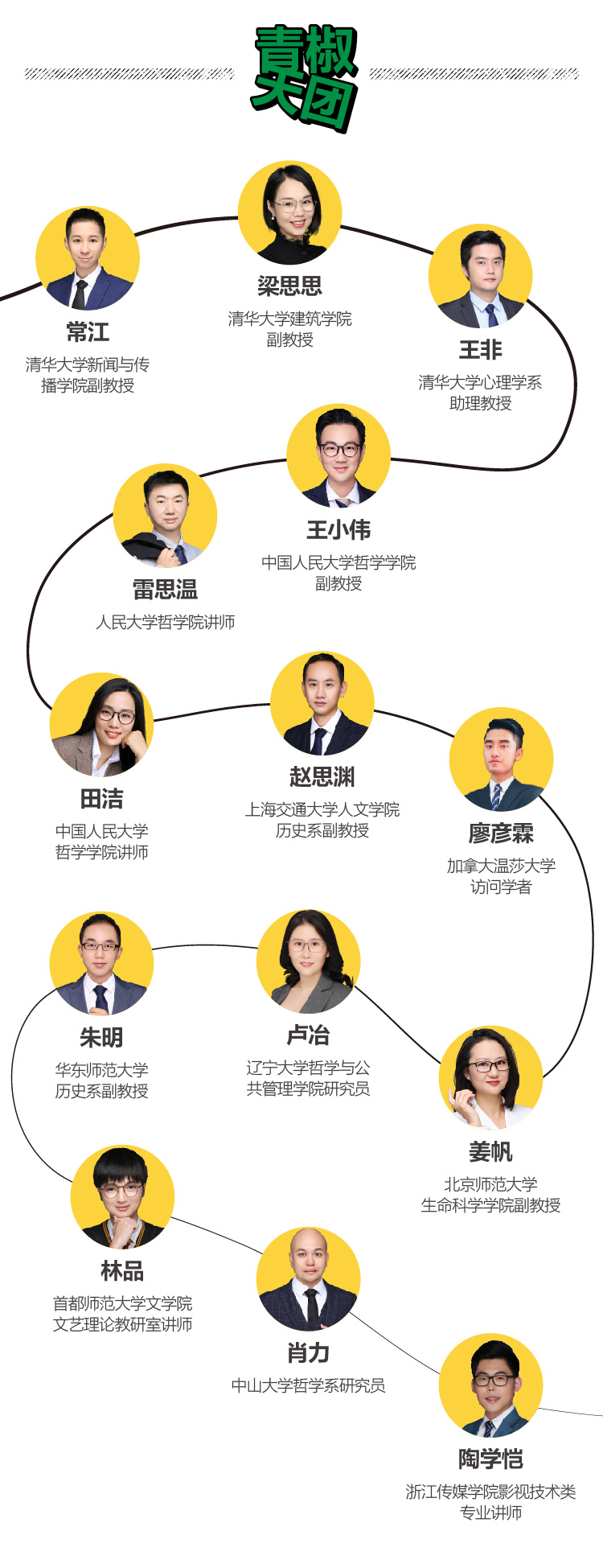 而在近10个月的时间里,豆瓣时间团队通过50所国内外的顶尖高校和学术机构,与超过230位优秀的青椒进行了探讨,最终确定了清华大学、中国人民大学、北京师范大学、南京大学等十所顶尖高校的14位优秀青椒,分别在哲学、电影、历史、文学、心理学等重要学科共同完成了14个精品专栏的制作。