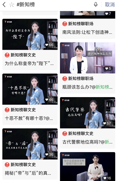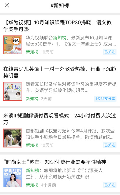 在朋友圈或者微信聊天时,经常性地可以带上自家公众号或视频号名称的话题标签,如#新知榜,这样做相当于带了一个自动生成的作品合集,里面包括同名视频号、公众号入口、相关文章以及同名微信圈子等,而且相比直接在群里打广告,这个明显更容易被接受。