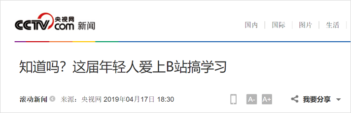 2019年4 月,央视发布了一篇叫作《知道吗?这届年轻人爱上B站搞学习》的文章,给B站打上了“学习网站”的标签,也正式向大众宣告了B站的知识属性。