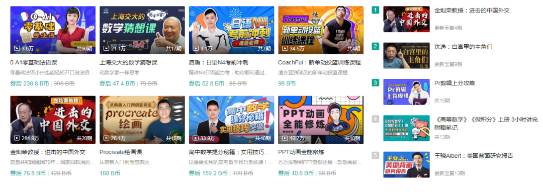 但是王炸也不一定意味着绝对的胜利,B站的知识付费现状如何呢?
