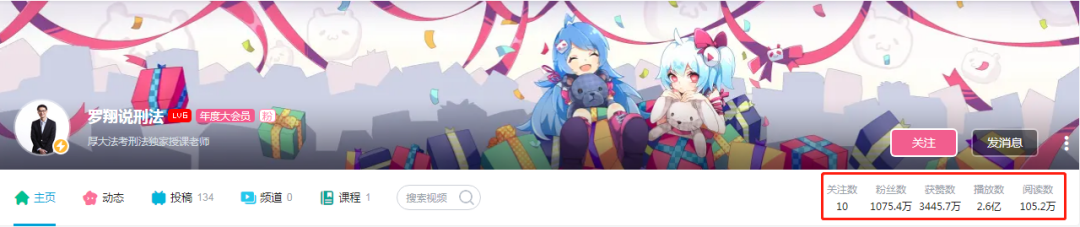 比如B站最火爆的中国政法大学刑事司法学院教授罗翔老师,仅仅只用了不到一年的时间,就成为 B站第二大up 主,粉丝数超千万。