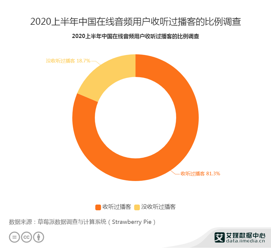 据艾媒咨询数据显示,2019年,中国在线音频市场用户规模达4.89亿人;预计2020年,用户规模将达5.42亿人。另外,而在线音频用户中,81.3%收听过播客。这说明,单从用户口径来说,播客在音频市场的渗透率仍非常高。