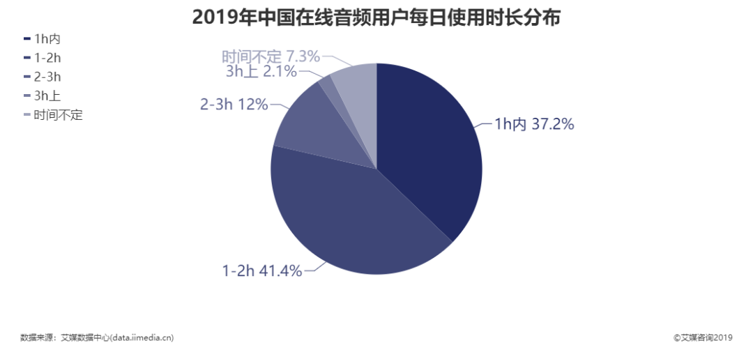 从2019年中国在线音频用户每日使用时长分布情况来看,大部分用户使用时长都在2小时内。巨头们都在争先恐后的抢夺内容端的资源,对于播客的争夺战即将打响,巨头的驶入也意味着播客将拥有更加明确和可行的商业化前景与实现路径。