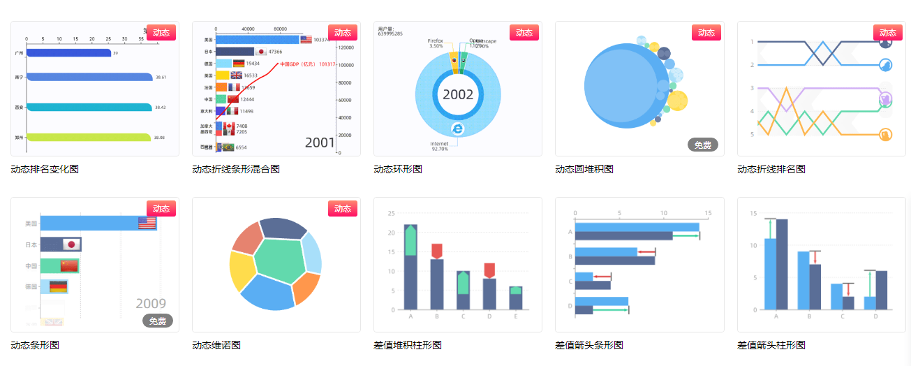 用图表汇报工作、分析数据时如何出彩?这里给大家推荐5个数据可视化神器,好看又会动,让枯燥的数据令人眼前一亮,彻底拯救丑图表!01、花火Hanabi会“跑”的数据图表你有见过吗? 首先推荐的是花火Hanabi,是一个在线数据短视频工具,让数据“跑”起来是他们的专长,好看的图表形态各异,制作的