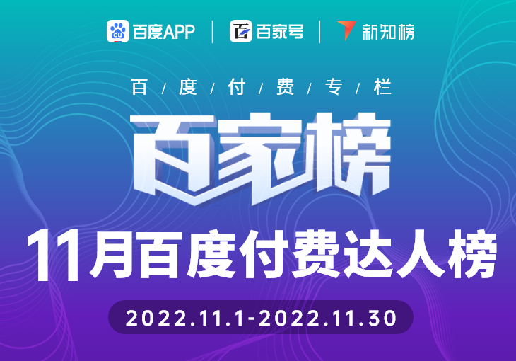 百度付费专栏11月榜单:故事分享类创作者百花齐放!