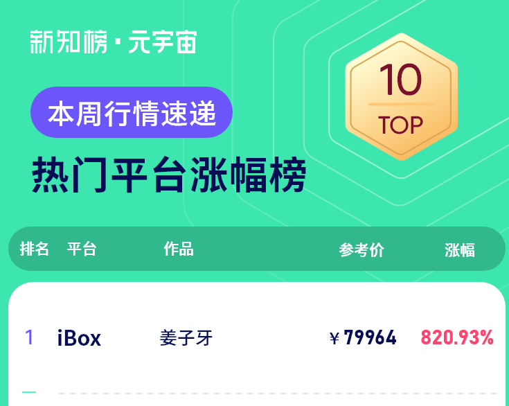 本周数藏平台涨跌榜:iBox突然拉升,从20亿直冲28亿