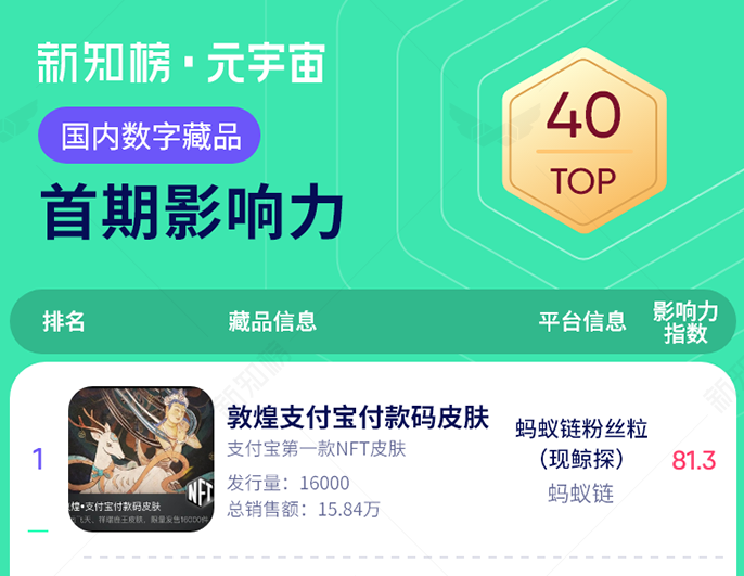 新知榜元宇宙发布首期国内数字藏品影响力TOP40
