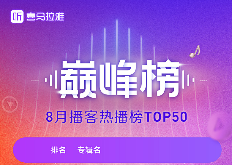 喜马拉雅8月巅峰榜:优质内容成用户“精神食粮”