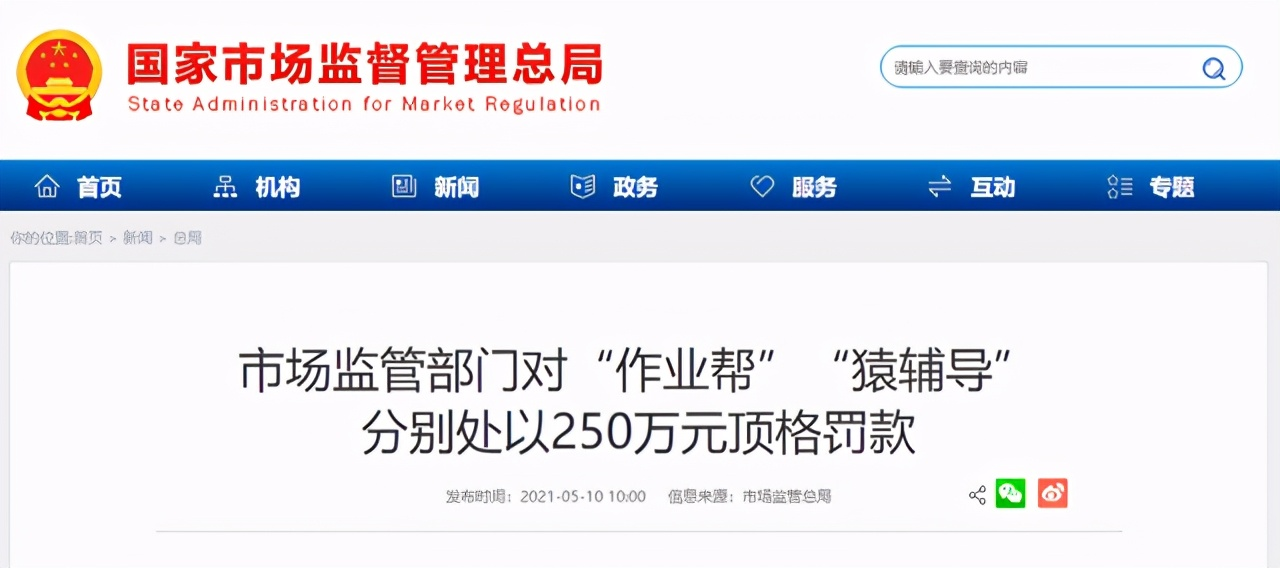 在线教育行业正面临着史无前例的强监管和高重视。5月10日,作业帮、猿辅导两家风头无两的在线教育头部企业因虚构教师任教经历、引用不真实用户评价、虚假标价等问题被处以警告和250万元顶格罚款的行政处罚。两张顶格罚单,无疑给火热的在线教育当头浇了一盆冷水。然而这并非个例,仅在不到半个月前,北京市市场监管局