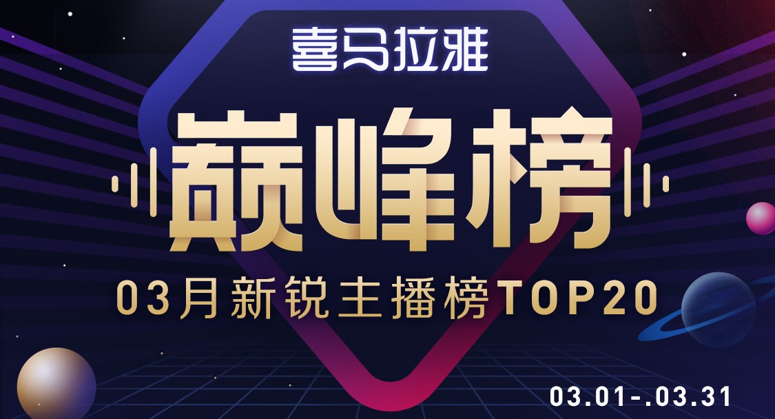 2019年底,我们携手喜马拉雅推出了喜马拉雅巅峰榜,取得了不错的用户反馈。新的一年,为更好地给内容创业者提供决策参考,我们决定联合喜马拉雅,每月发布一次喜马拉雅巅峰榜,本期新知榜,我们就为你带来2月的榜单。本月榜单包括新锐主播榜、人气声优榜、直播红人榜、人气电台榜,4大主播榜单;新品榜、热播榜、内容