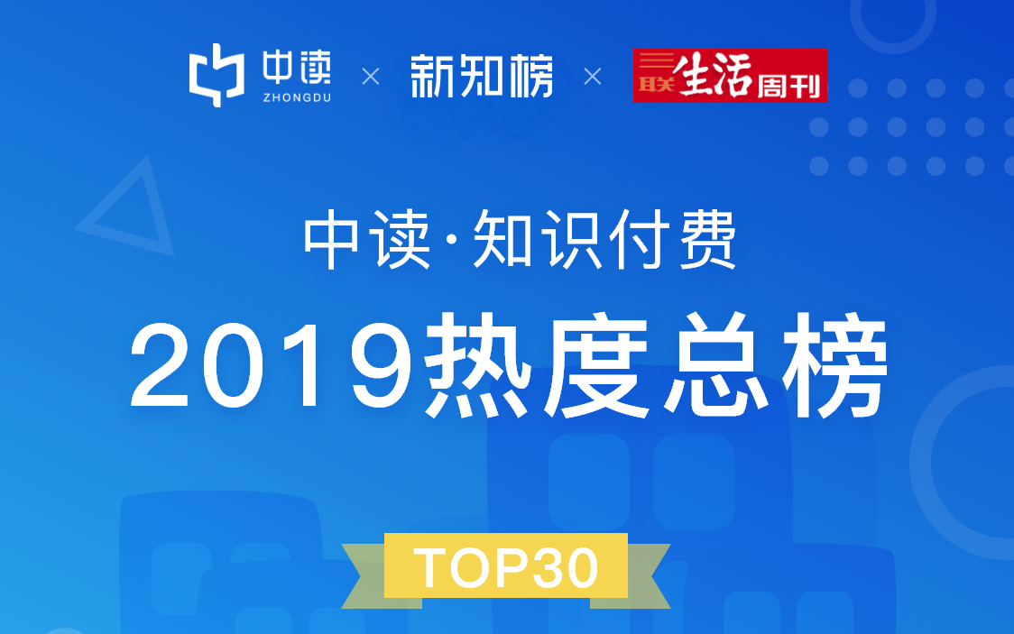 春节前,我们联合腾讯视频、优酷、爱奇艺等多家平台,发布了2019年终榜单,吸引了不少内容创业者的关注。本期新知榜,我们携手中读推出“中读·知识付费2019热度总榜”,为你盘点2019年,中读平台上最畅销的30个年度课程。“快慢之间有中读。”中读,是三联生活周刊创立的知识付费平台。依托三联生活周刊的强