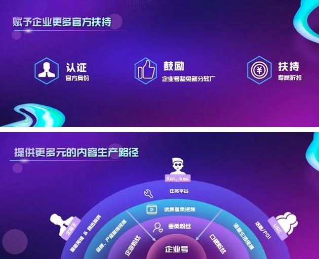 10月22日,2019抖音企业号生态大会上,抖音企业号发布“好生意,看得见”的全新slogan,并针对企业主和服务商推出生态扶持计划。针对企业主方面,抖音将通过官方扶持、内容生产以及进阶宝典三个层面,为企业主的成长保驾护航。如企业号豁免部分软广、享专属折扣,为企业制定从基础、实践到进阶的系列提升培训