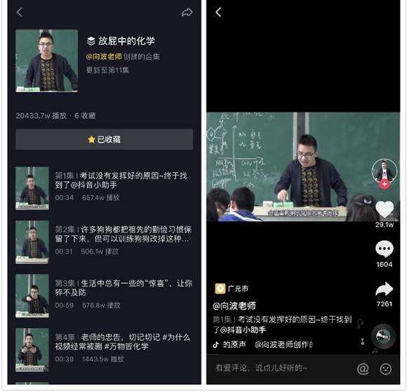 账号名为“向波老师”创建的合集页“放屁中的化学”继为知识创作者开放首批编辑权限后,抖音于近日正式上线合集功能,面向所有类别创作者开放,方便用户快捷、连续观看合集内的短视频内容。据抖音产品经理介绍,合集一期功能支持在抖音PC端创建以及在App端观看,功能上线后将优先面向知识创作者开放。