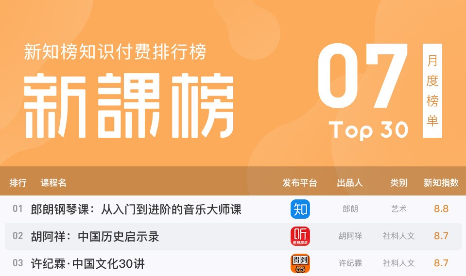 新知榜知识付费7月新课榜