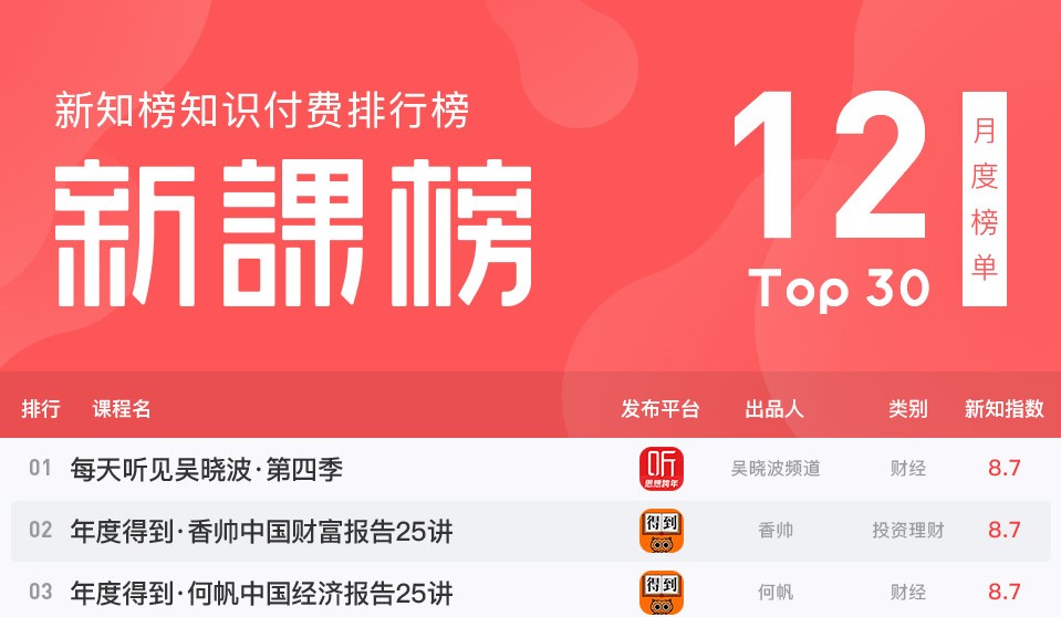 新知榜知识付费2019年12月新课榜出炉