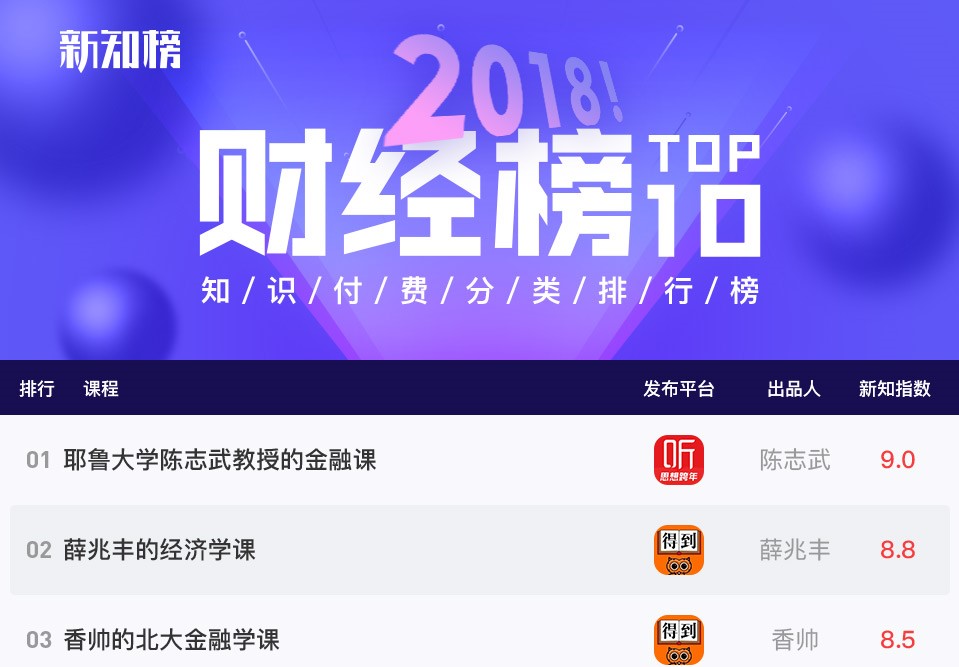 新知榜联合21财经,发布2018年度泛财经类知识服务榜单