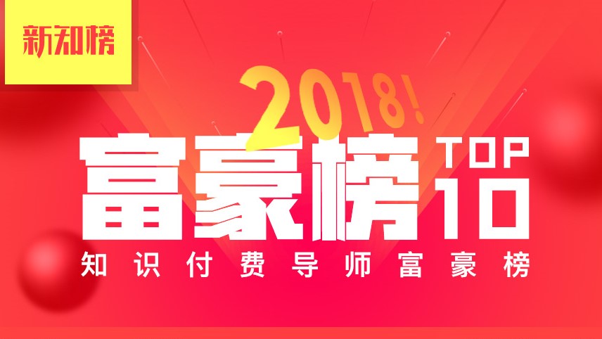 为了推动全民终身学习时代的到来与知识付费产业的繁荣发展,2018年2月12日,新知榜正式发布了第一届中国知识付费导师富豪榜,以各导师在全网知识付费平台所上线的课程公开销售总收入为依据,评选出了中国知识付费导师10大富豪。在过去的2018年,知识付费行业又迎来了余秋雨、马未都、管清友、易中天等多位重磅