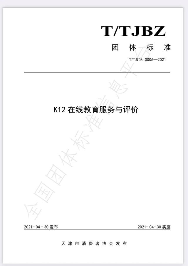 近日,天津市消费者协会对外发布《K12在线教育服务与评价》团体标准。作为国内首个K12在线教育团体标准,该标准将为规范在线教育服务提供参考依据。为规范在线教育企业发展,加强行业自律、维护消费者权益,天津市消费者协会联合河北省消费者权益保护委员会、北京大学电子商务法研究中心、中国消费者报社、北京市律师