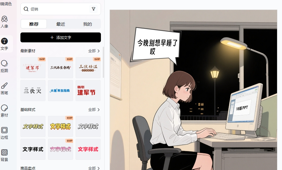 可以对每一张生成的图片进行修改优化,比如添加文字,调整颜色,你想怎么调就怎么调就好啦~